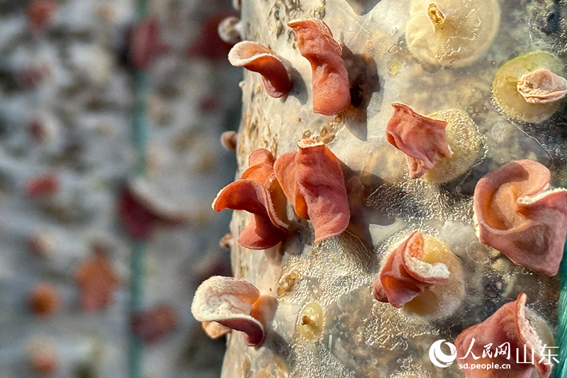 “这种粉红色的木耳我们称为‘贵妃木耳’,比普通的黑木耳颜色亮丽、耳片肥厚、营养丰富,是餐桌上的必备佳品。”山东省平度市蓼兰镇马丘村党委书记、种植基地负责人陈礼善介绍,“贵妃木耳”目前供不应求。